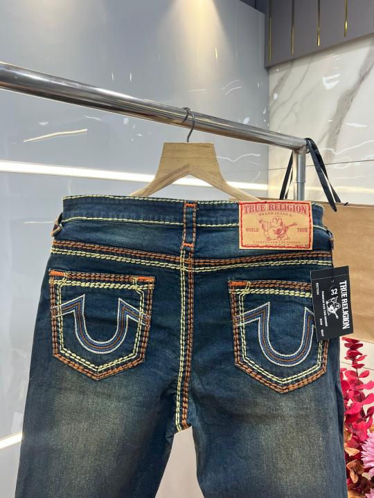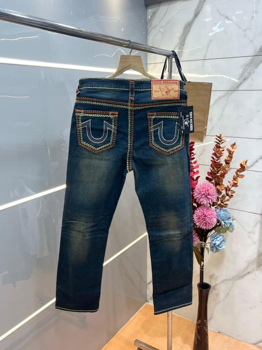 True Religio n Blue Shade Straight fit Premium Imported Stretchable Lycra Fabric Denim with Back Embroidered Design 3692